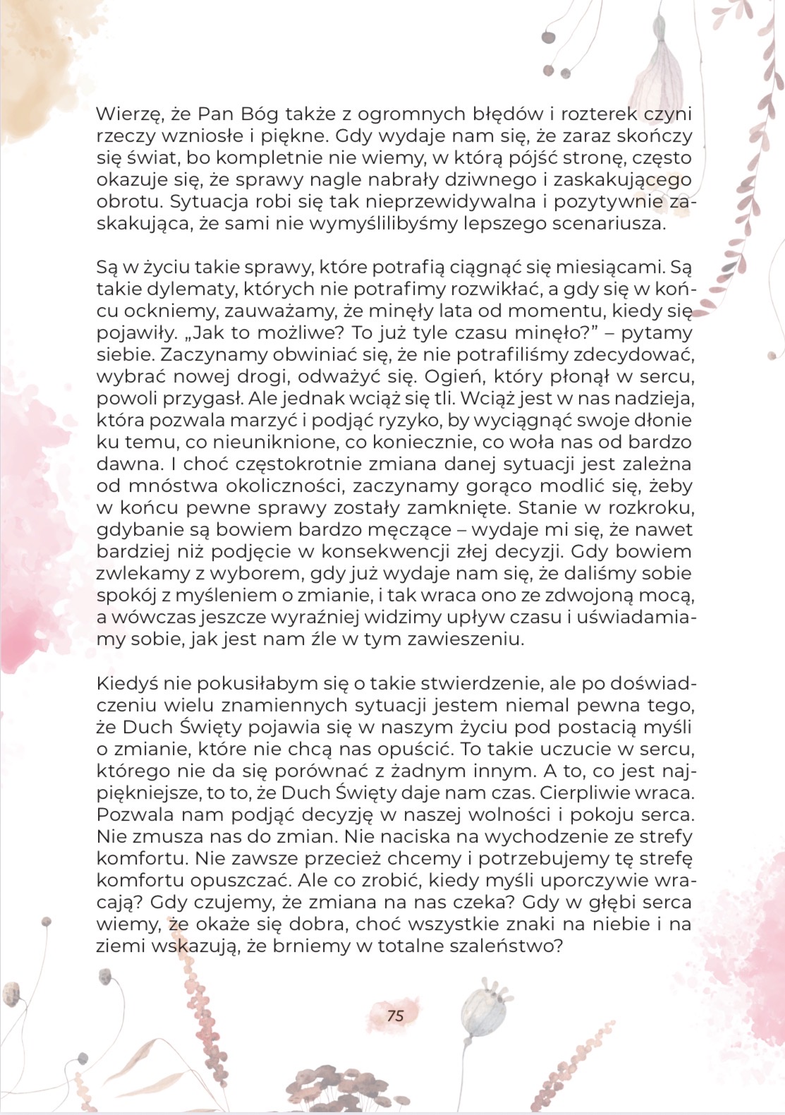 Współpraca z tymi podszeptami to niekiedy droga długa i kręta, jednak nie ma nic piękniejszego niż oddanie Duchowi Świętemu prowadzenia w naszym życiu. W każdych aspektach – tych mniejszych i tych większych.