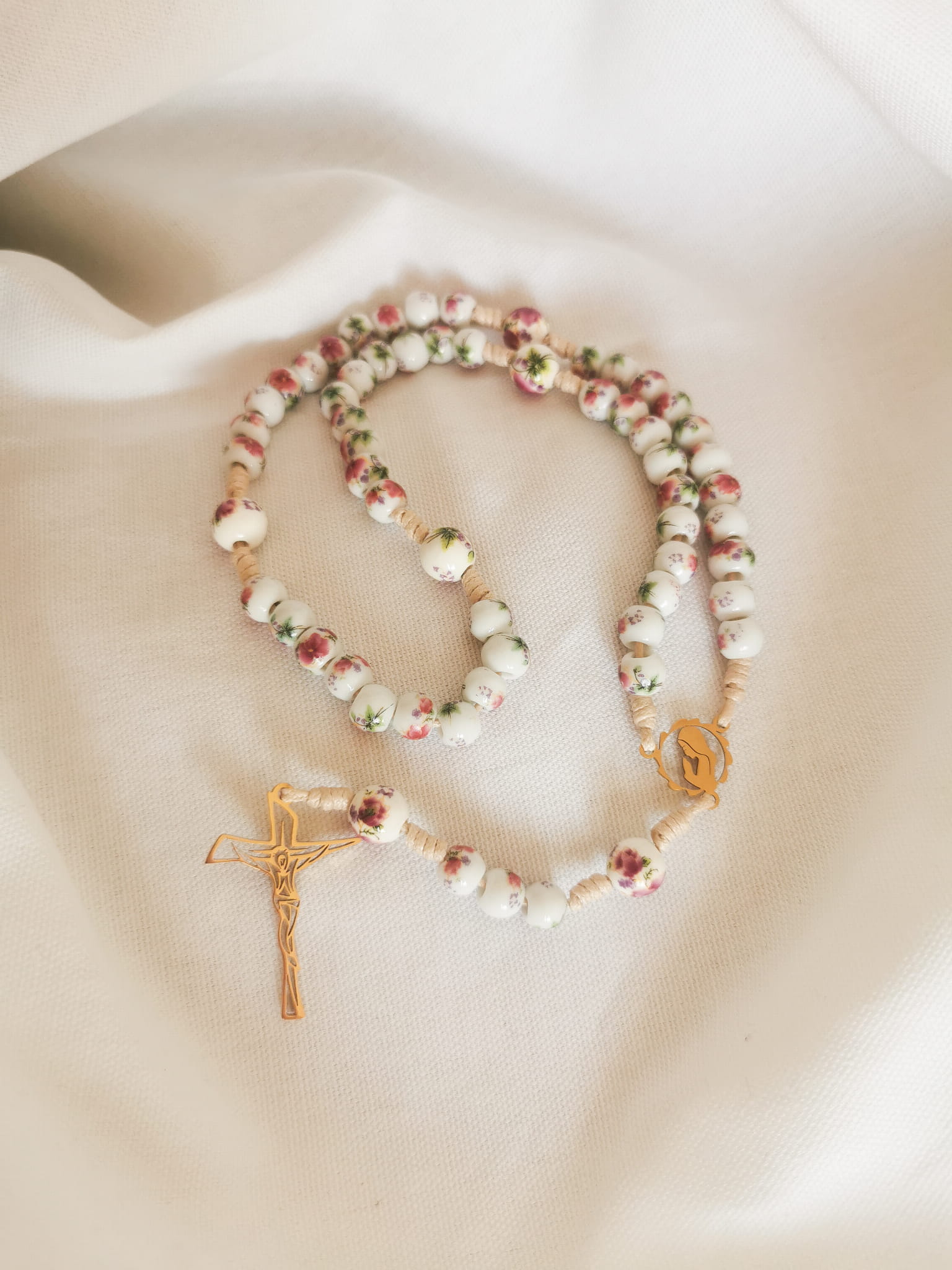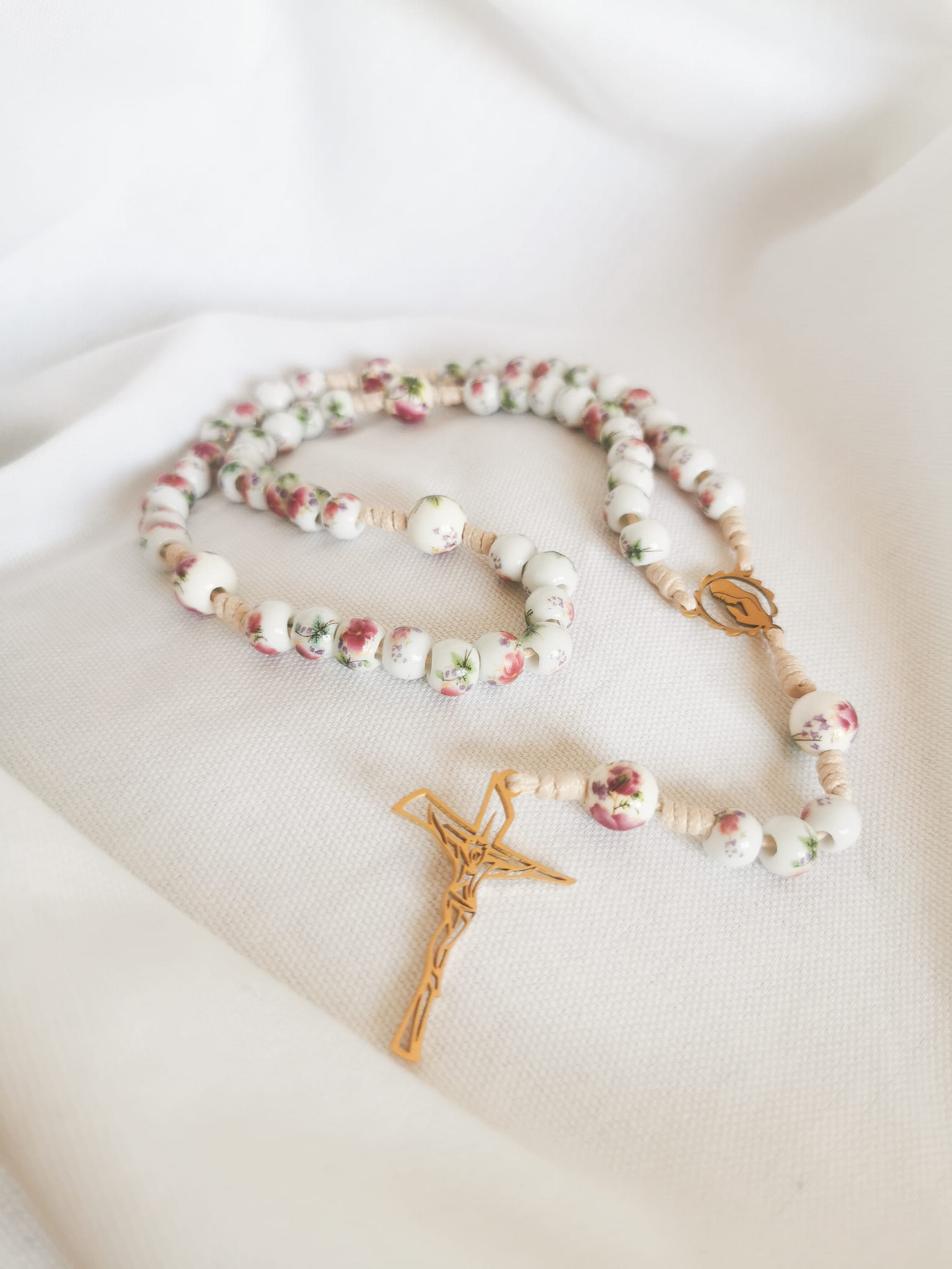 Każdy różaniec jest wykonywany ręcznie z dbałością o szczegóły. W związku z tym, że każdy z nich jest jedyny i niepowtarzalny, otrzymany produkt może nieco różnić się od tego widocznego na zdjęciu.