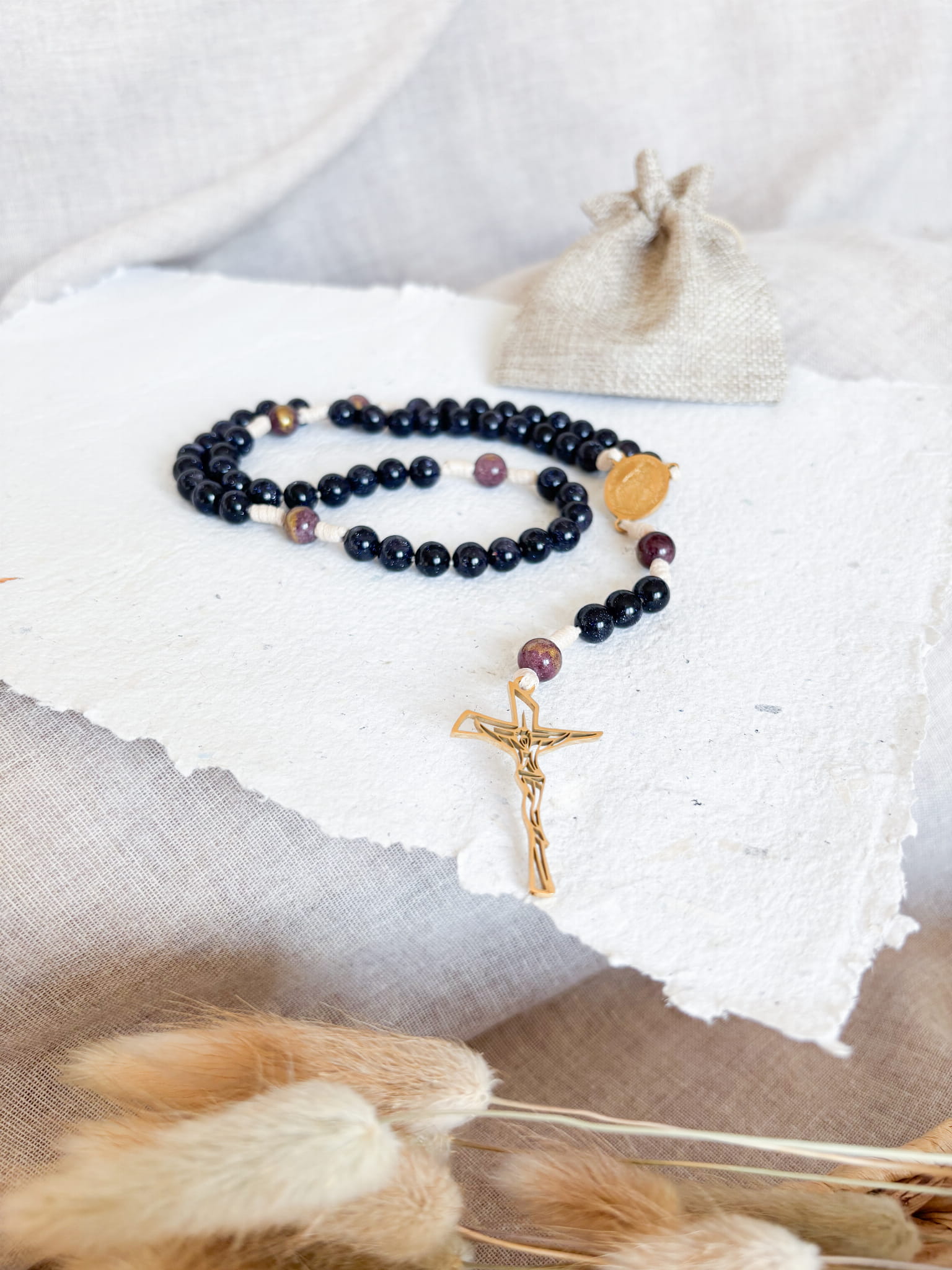 Każdy różaniec jest wykonywany ręcznie z dbałością o szczegóły. W związku z tym, że każdy z nich jest jedyny i niepowtarzalny, otrzymany produkt może nieco różnić się od tego widocznego na zdjęciu.