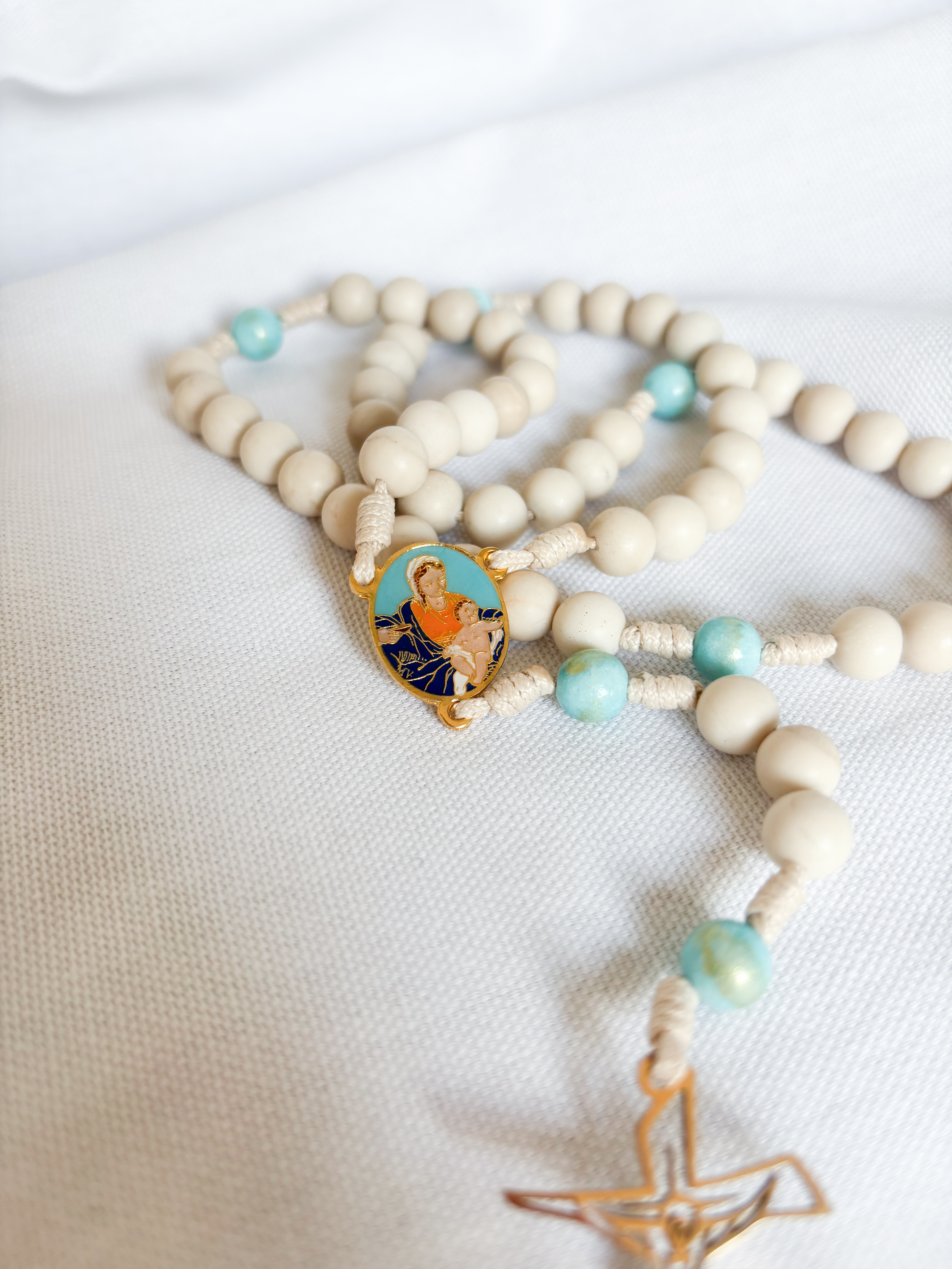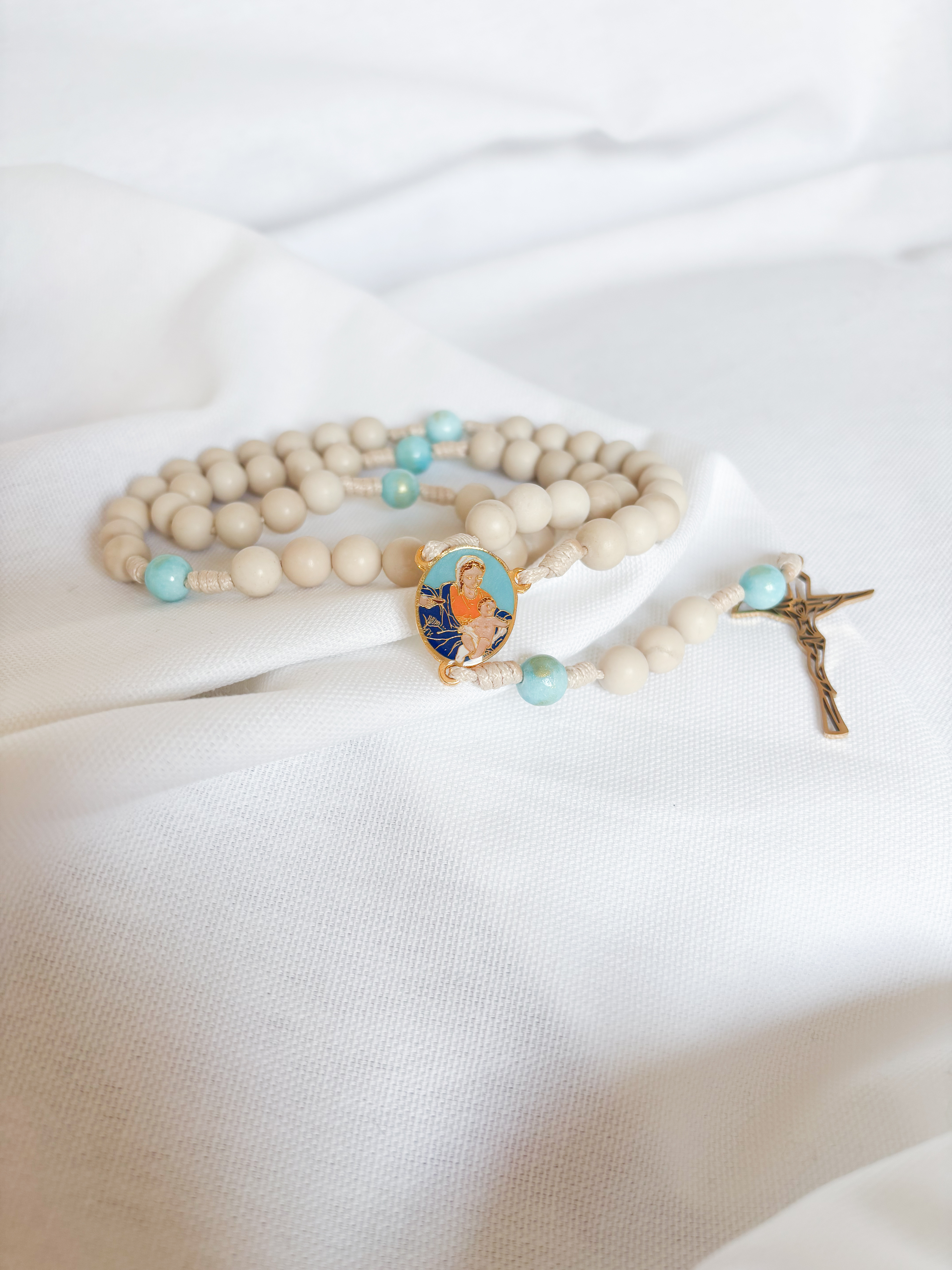 Różaniec błękitny Maryja z Dzieciątkiem