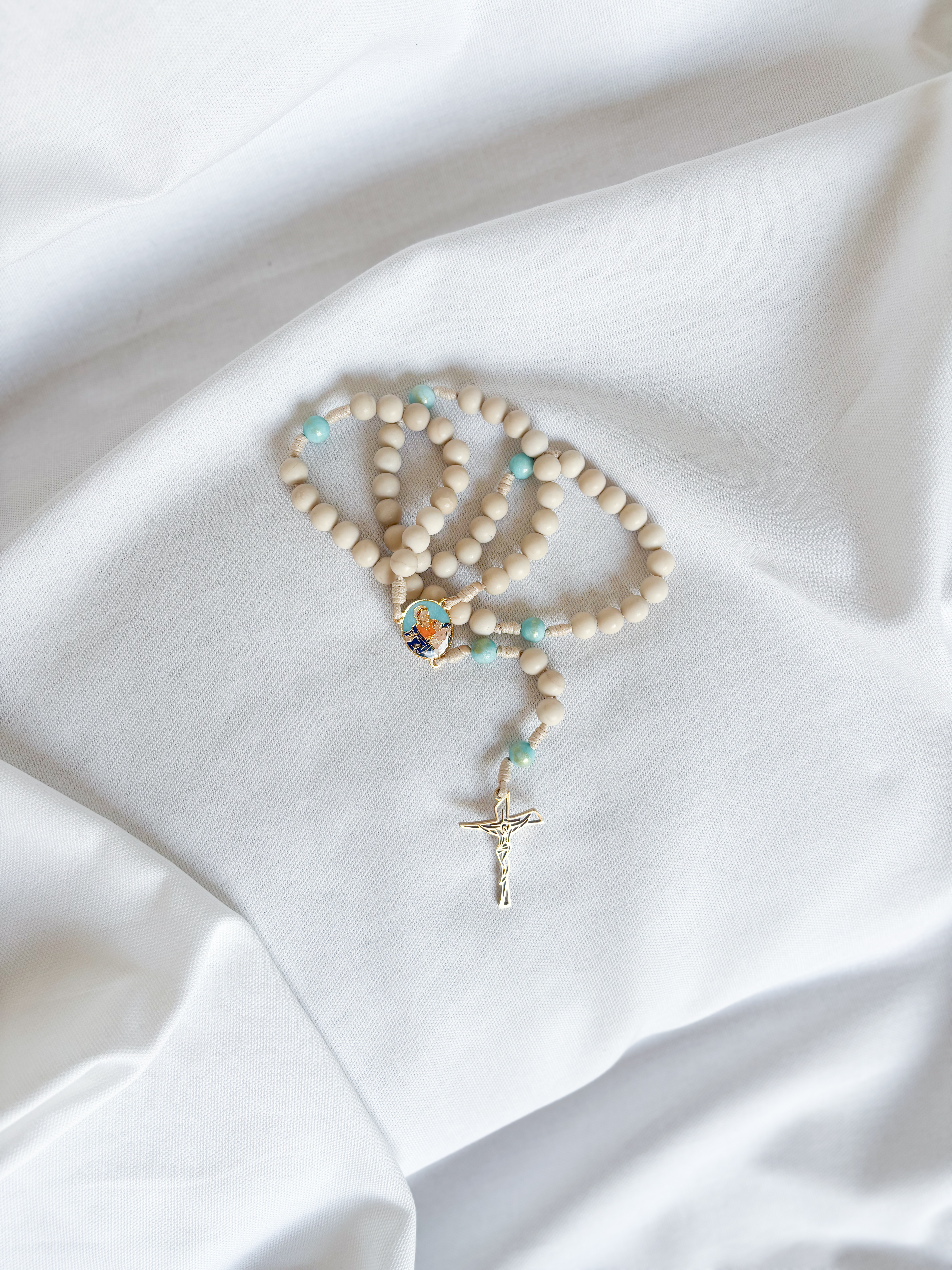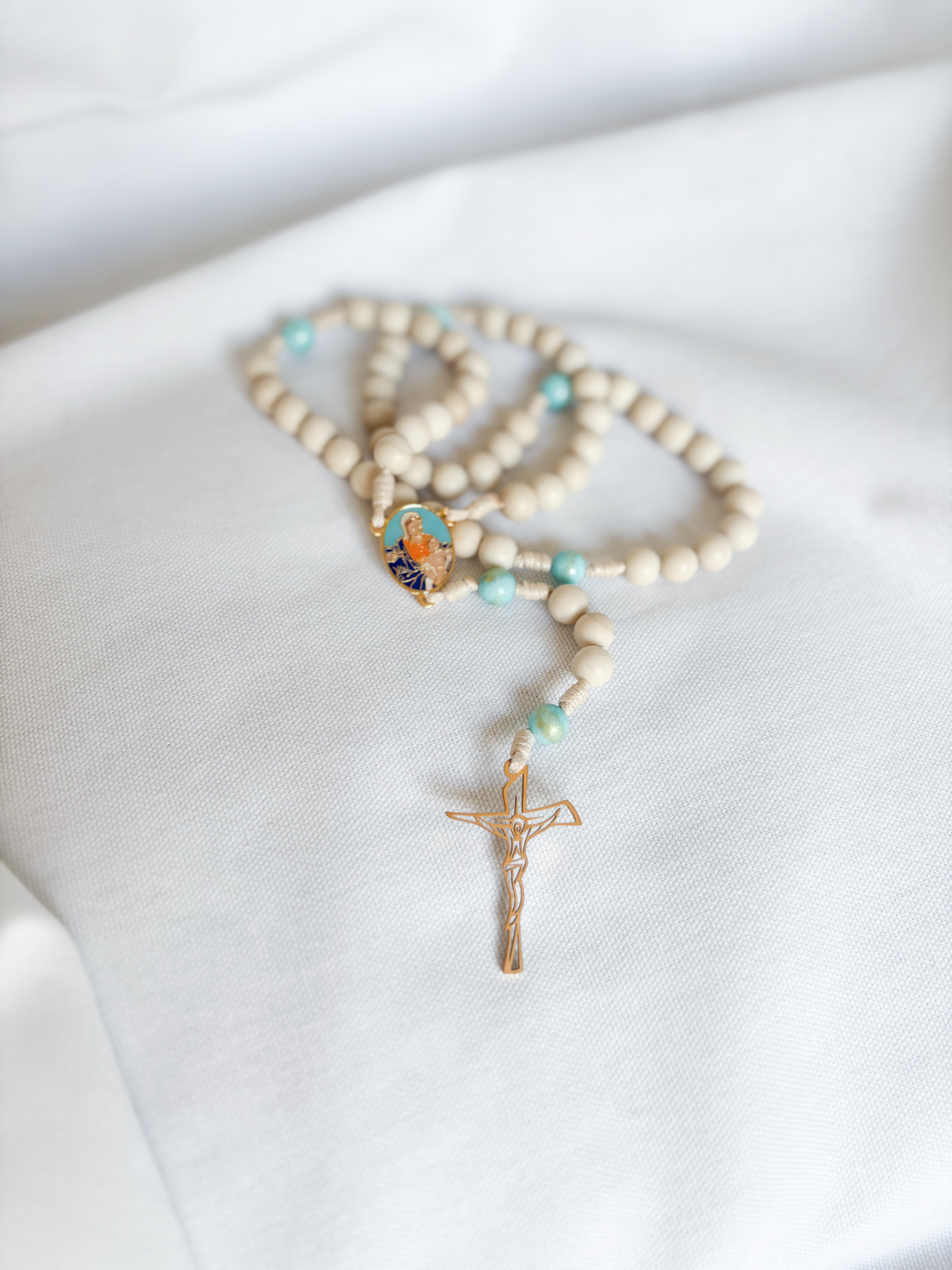 Każdy różaniec jest wykonywany ręcznie z dbałością o szczegóły. W związku z tym, że każdy z nich jest jedyny i niepowtarzalny, otrzymany produkt może nieco różnić się od tego widocznego na zdjęciu.