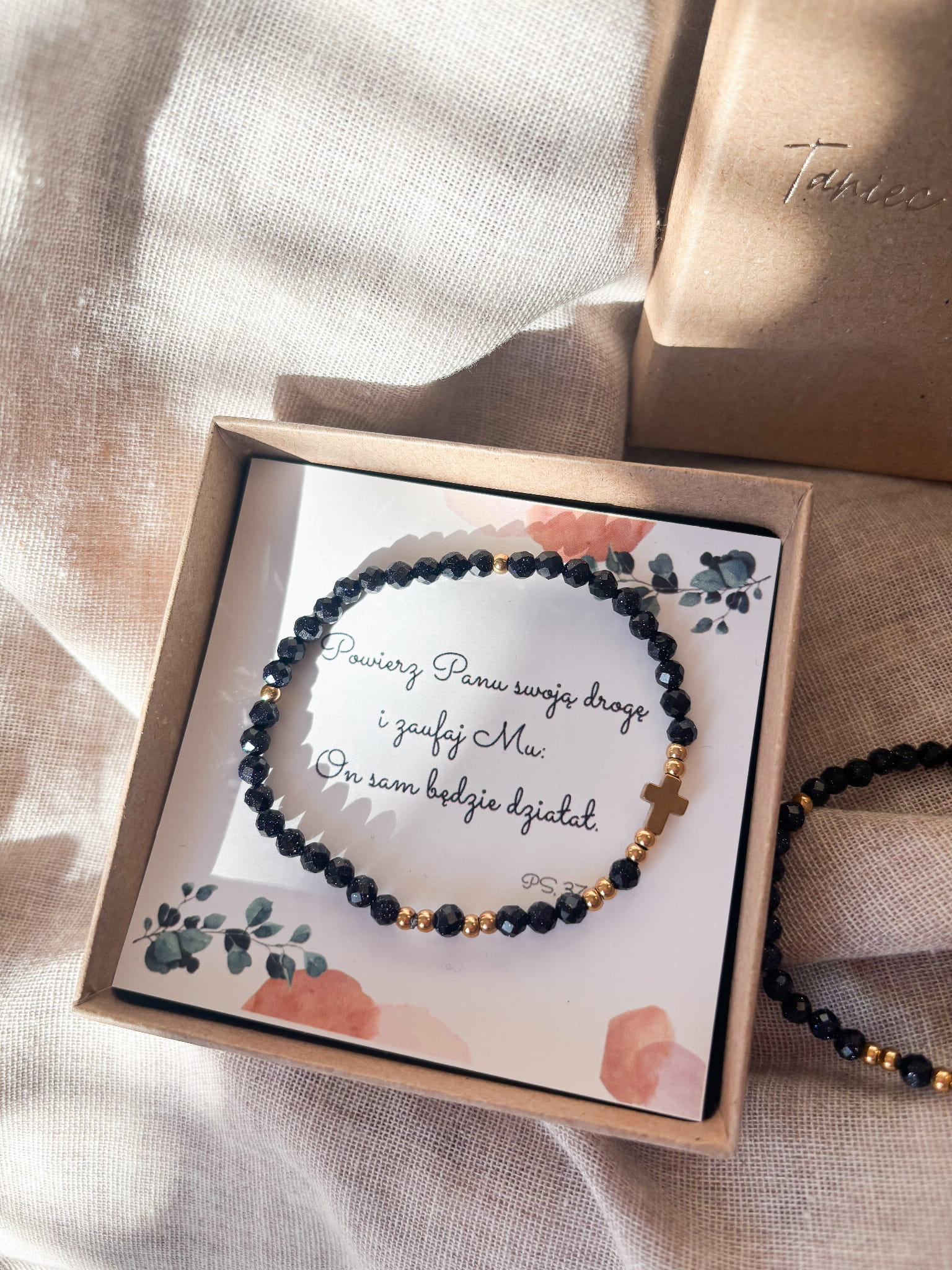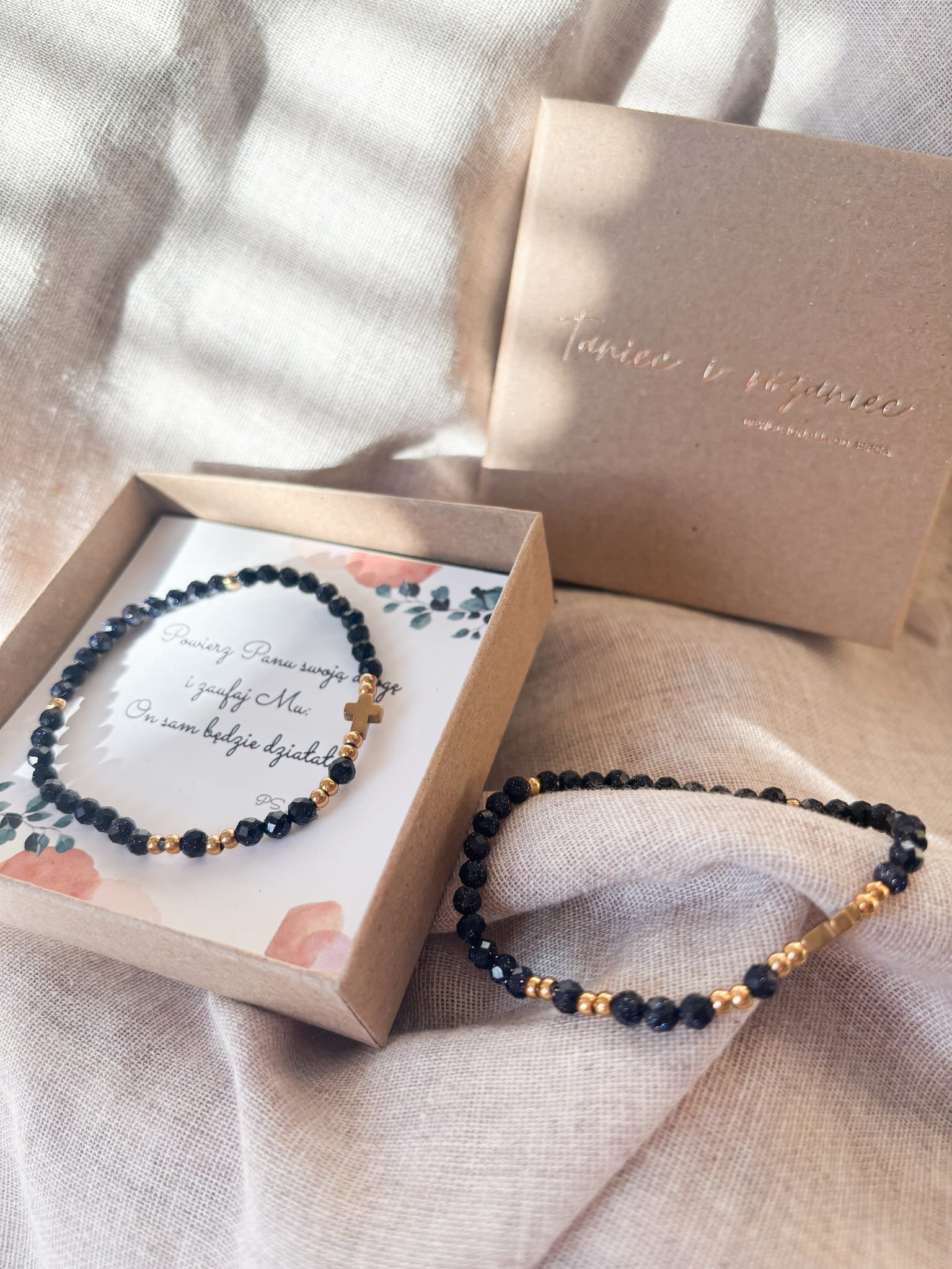Ręcznie robiony różaniec w formie bransoletki. Niech w zabieganiu i pośpiechu ten mały przedmiot przypomina Ci o modlitwie i wlewa w serce pokój. Niech będzie świadectwem wiary i narzędziem modlitwy, który będzie towarzyszyć Ci w codzienności.