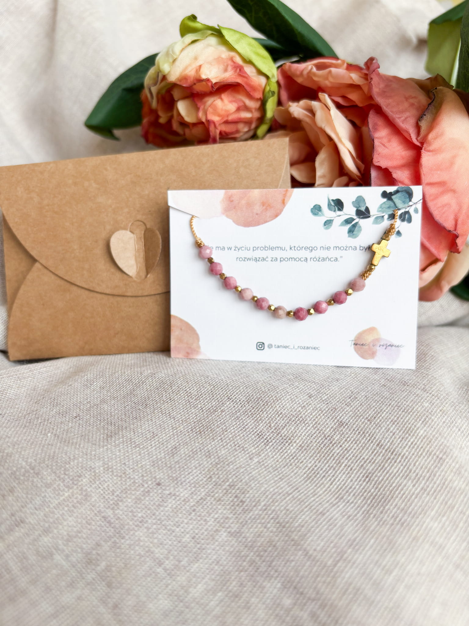 Różaniec na regulowanym sznurku jubilerskim w uniwersalnym rozmiarze.