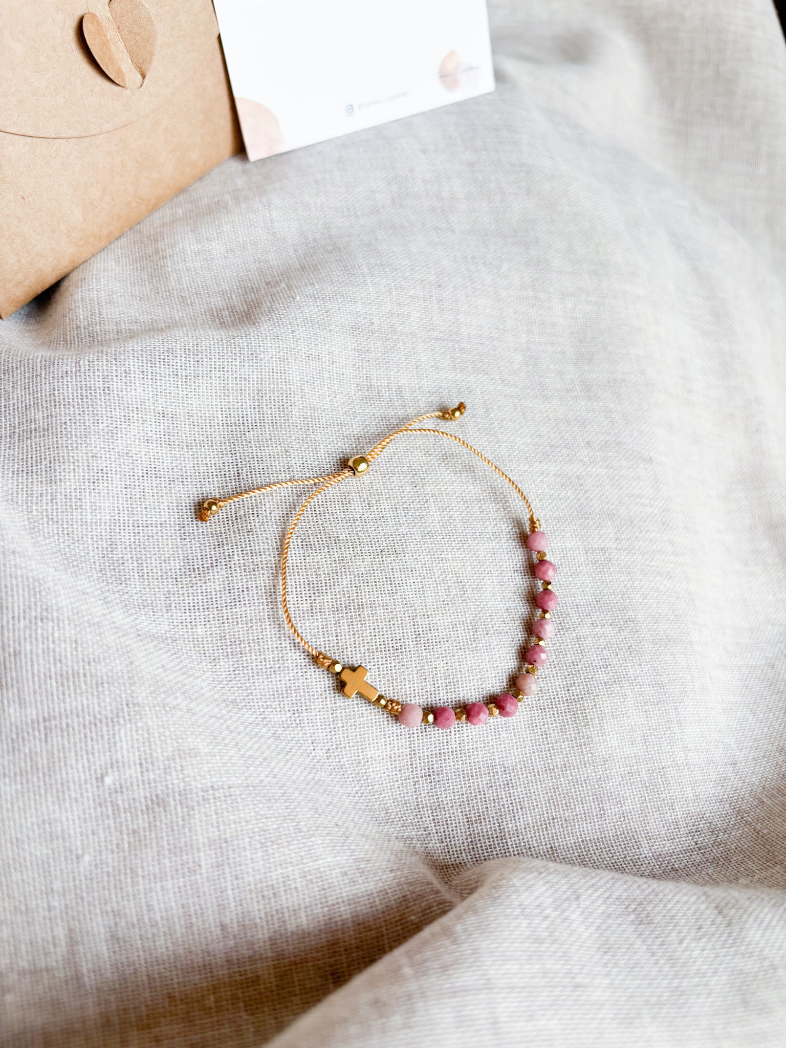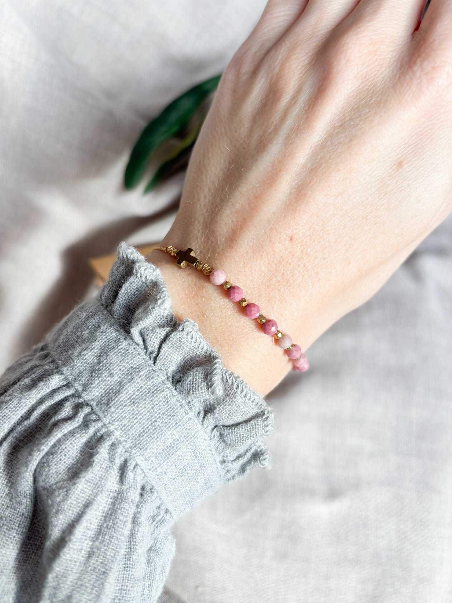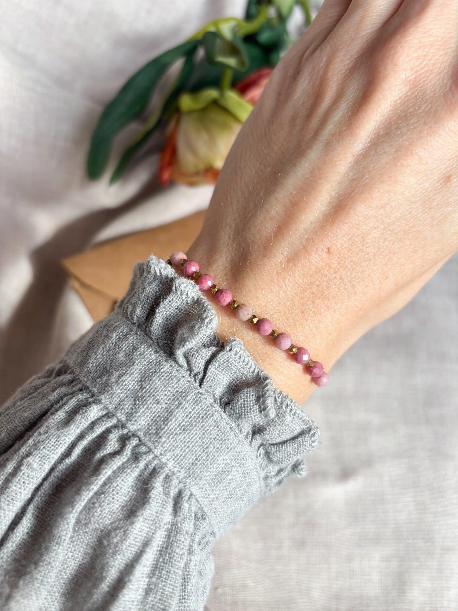 Ręcznie robiony różaniec w formie bransoletki. Niech w zabieganiu i pośpiechu ten mały przedmiot przypomina Ci o modlitwie i wlewa w serce pokój. Niech będzie świadectwem wiary i narzędziem modlitwy, który będzie towarzyszyć Ci w codzienności.