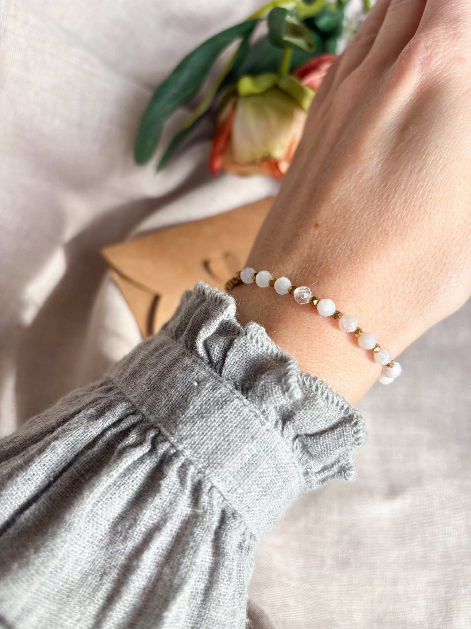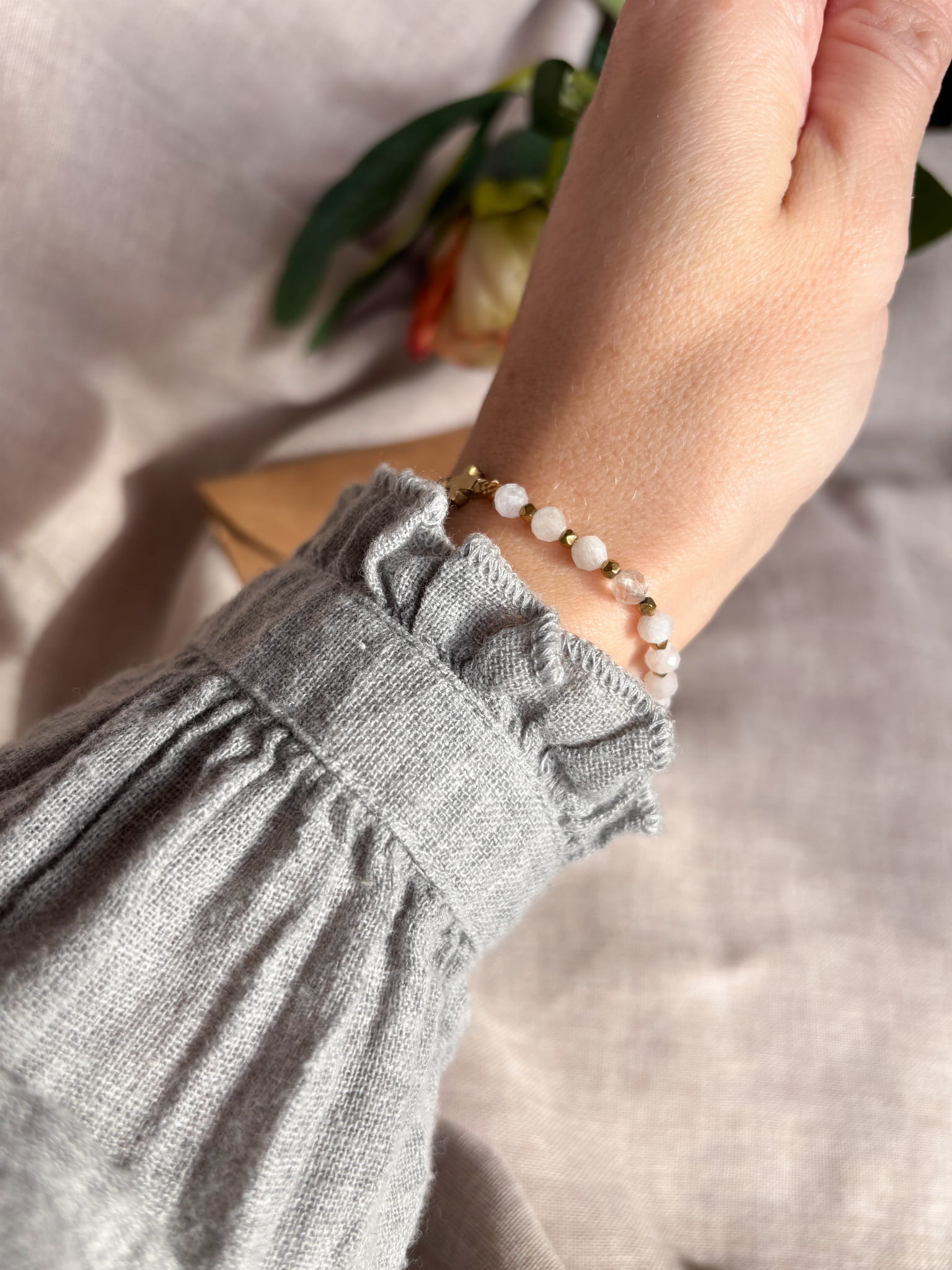 - koralików z kamienia księżycowego 4mm