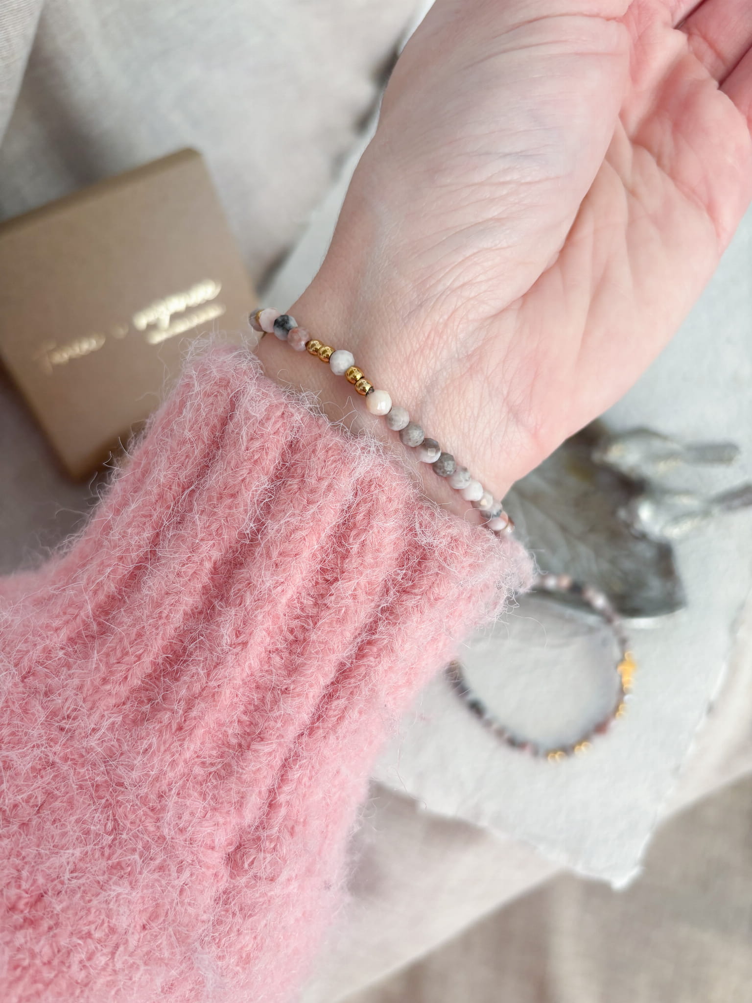 - koralików z fasetowanego jaspisu 4 mm
